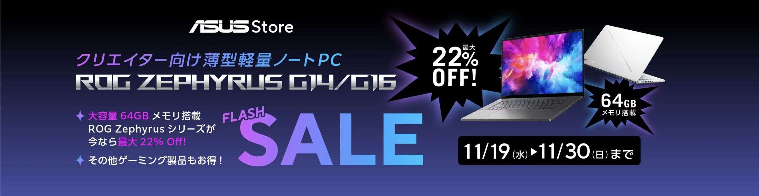 「ROG Zephyrus G14 (2025)」が100,000円OFFなど、お得が詰まった限定セール!