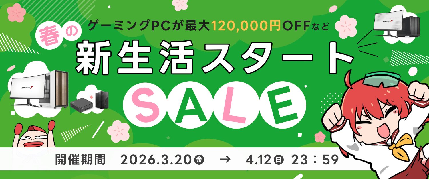 アークでは新生活シーズンに合わせたゲーミングPCセールが開催されています。