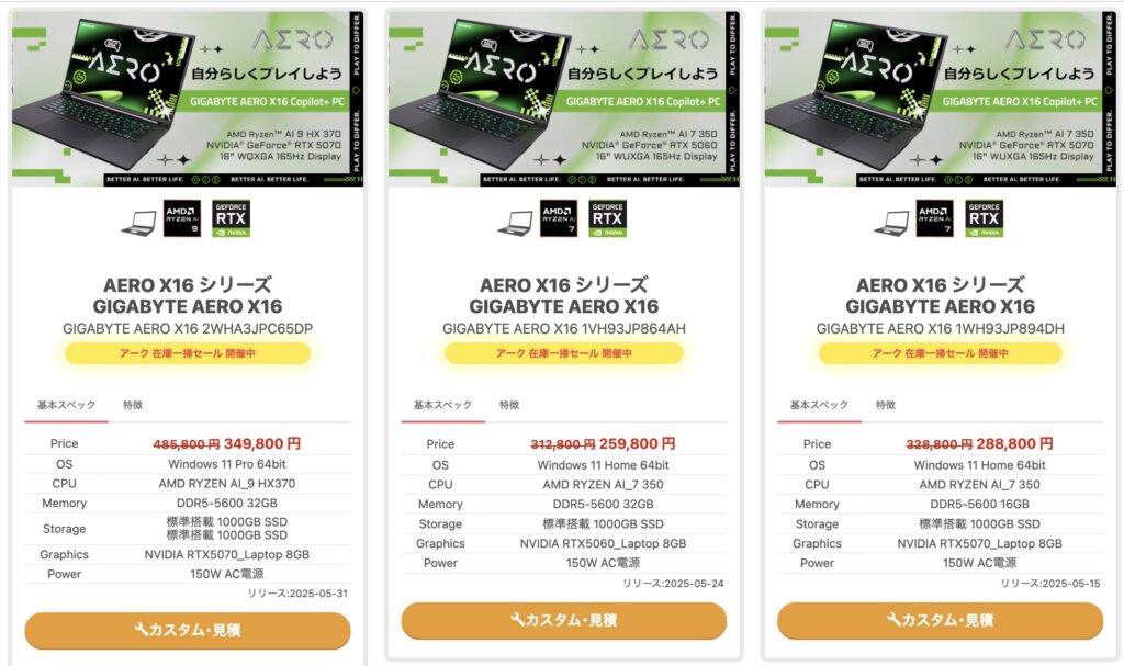メモリなど既に一部完売となっておりますので、気になる商品は悩む前に購入し、その後じっくり悩むのがおすすめです。