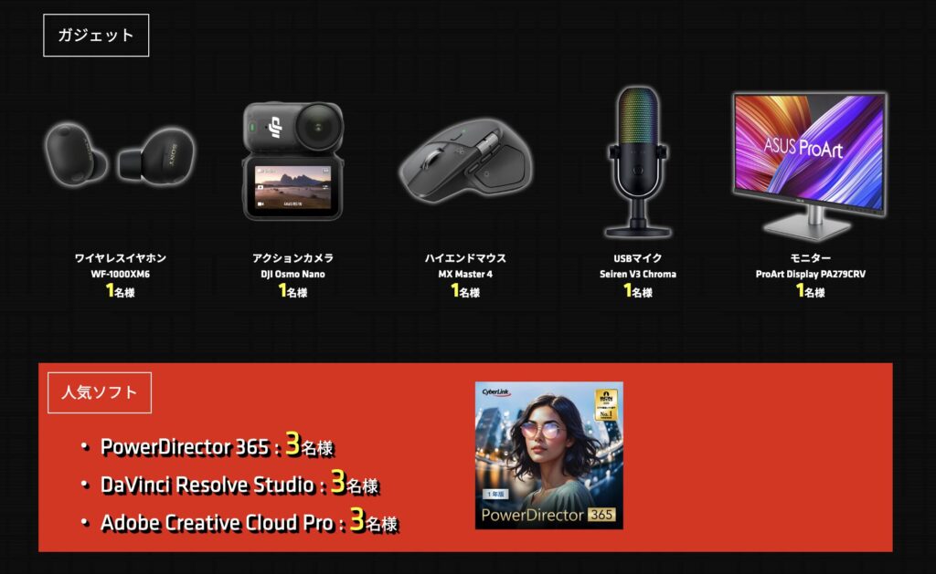 対象のAMD製品を購入して応募すると、豪華ガジェットや人気クリエイティブソフトが当たるチャンス!