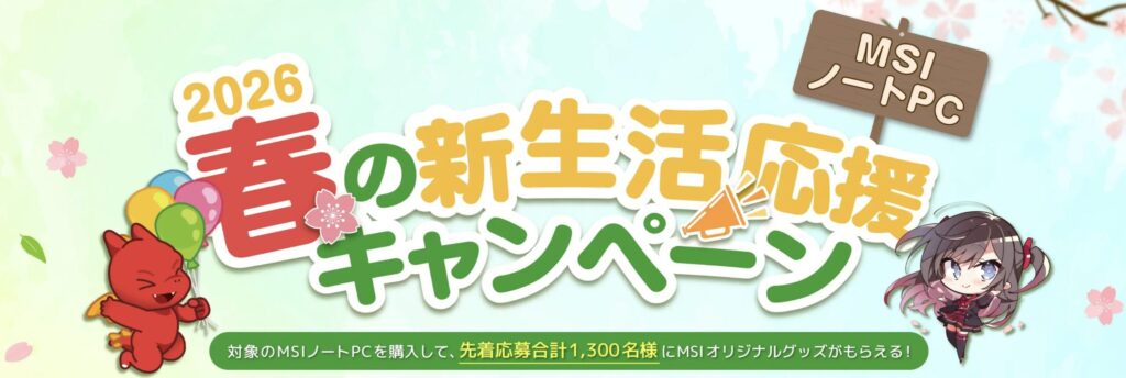 MSIでは新生活に向けたお得なノートPCキャンペーンが開催中です。