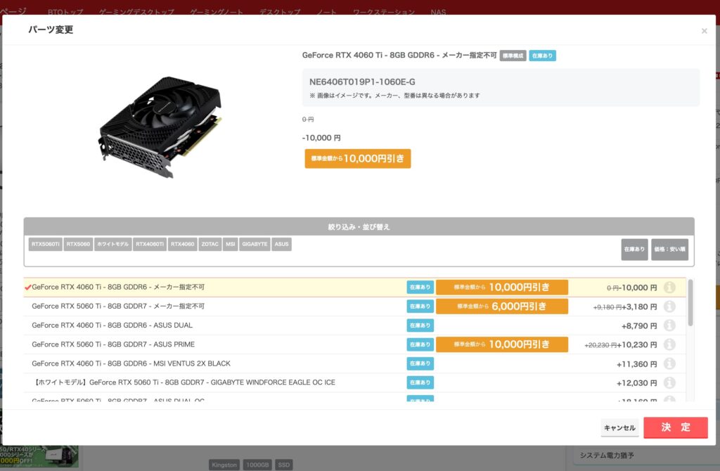 GPUって高額パーツなので値引きはほんと嬉しいです!