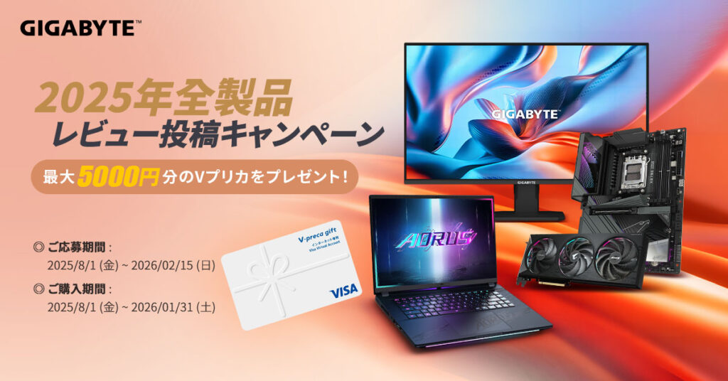 - GIGABYTE 2025年全製品レビューキャンペーン