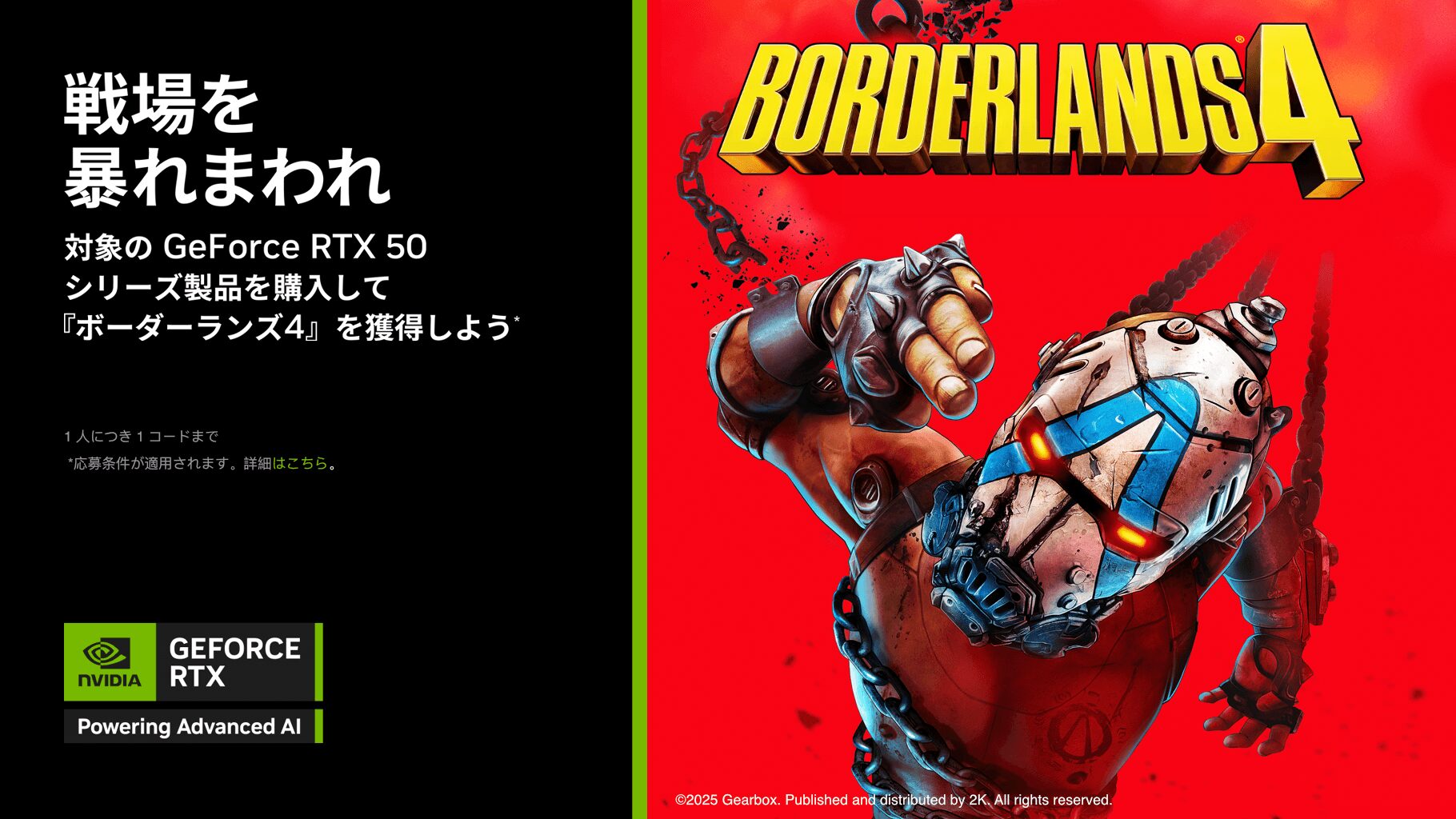 対象のGeForce RTX 50シリーズ製品を購入して『ボーダーランズ4』を獲得しよう