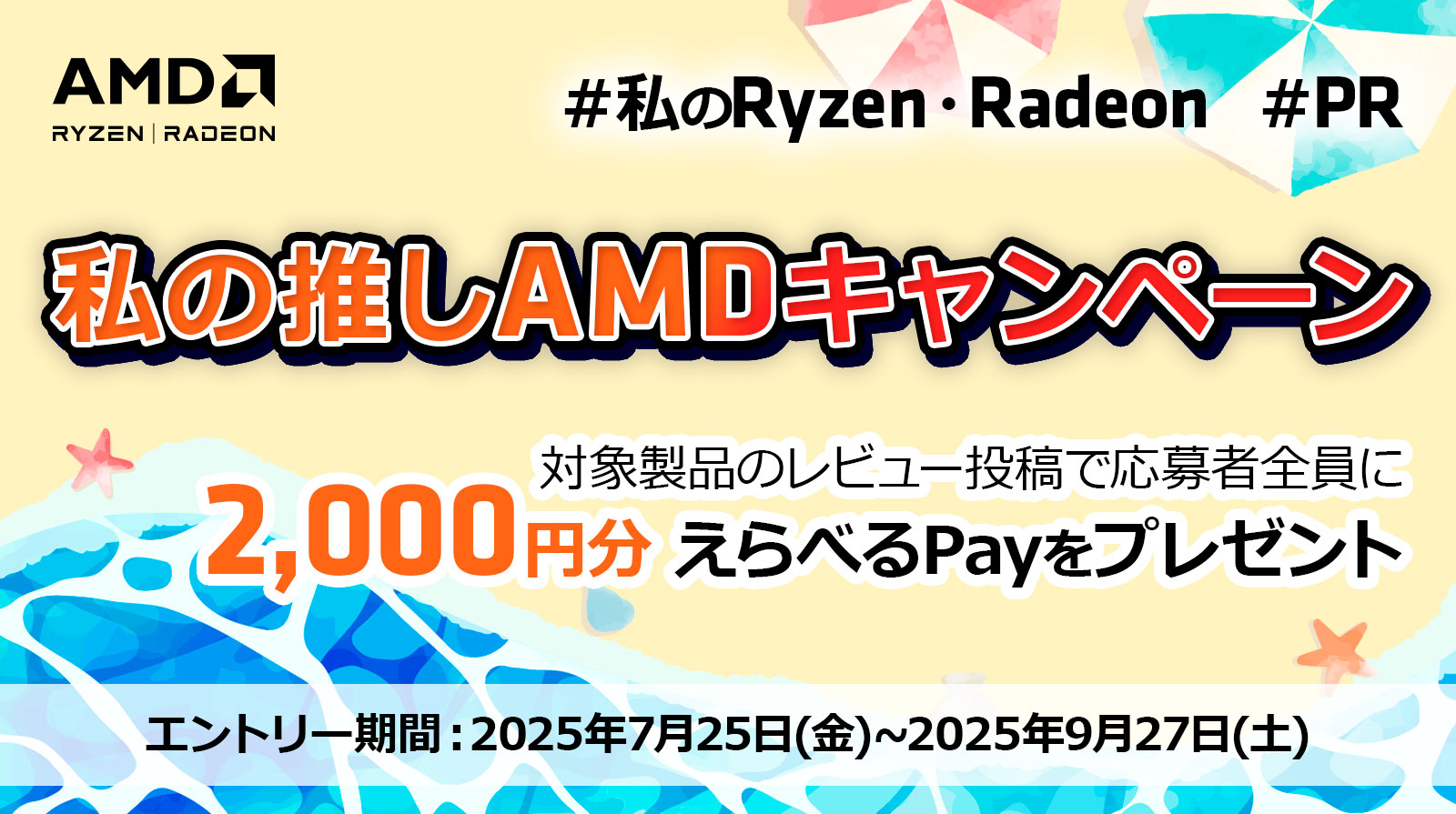AMDの対象商品購入で2,000円分の選べるpayが応募者全員にプレゼント!
