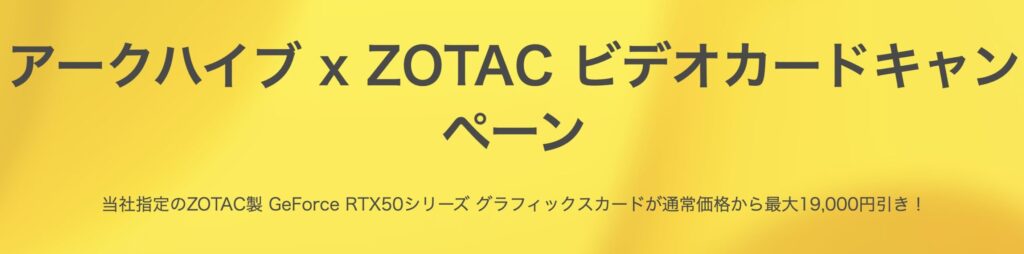 「GeForce RTX 5090 SOLID OC White Edition」などのアーク指定ZOTAC製GPUが最大19,000円OFF!