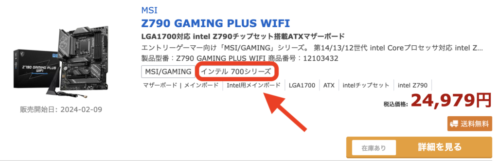 一方のマザーボードですが、こちらのページより対応モデルを検索し、「インテル700シリーズ」と記載されたものを選択しましょう。