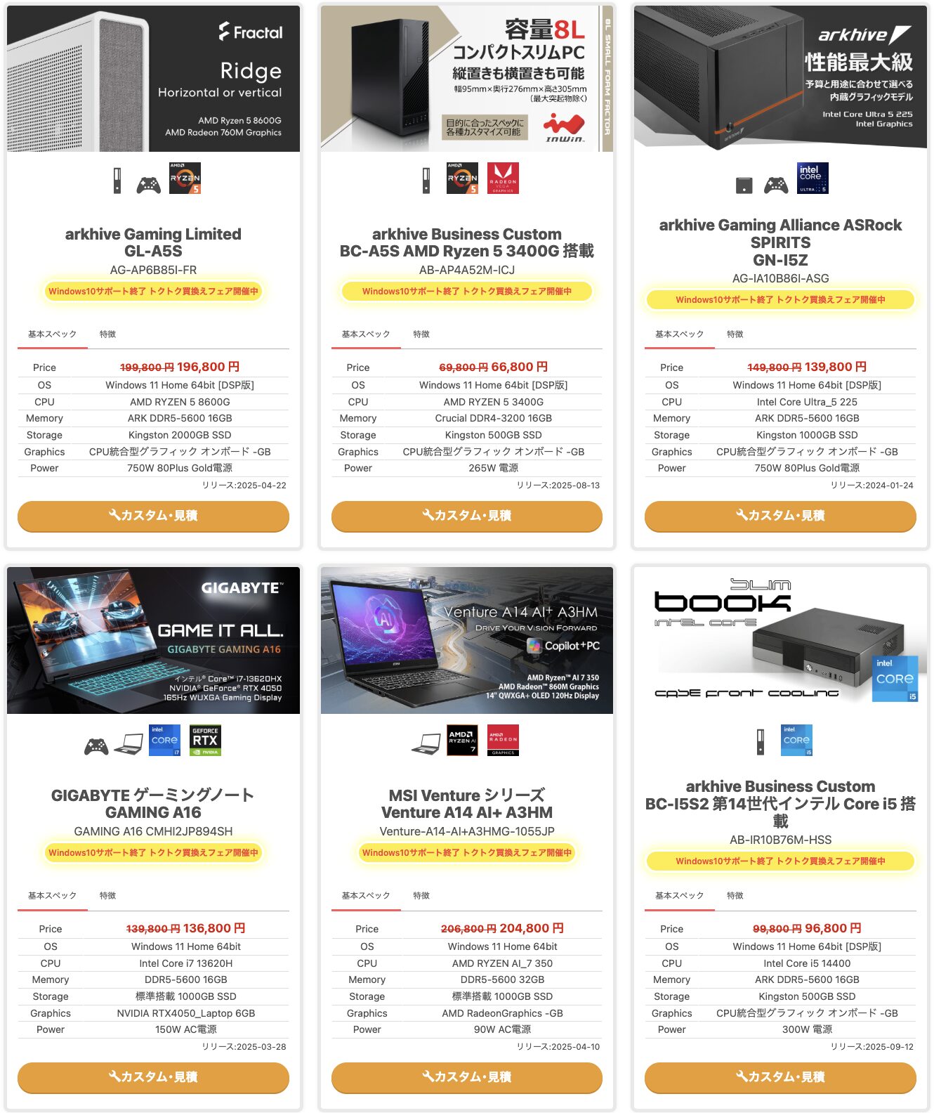 arkhive PC サマーセールでは、アークの販売するBTO PCがセール価格となって販売されています。