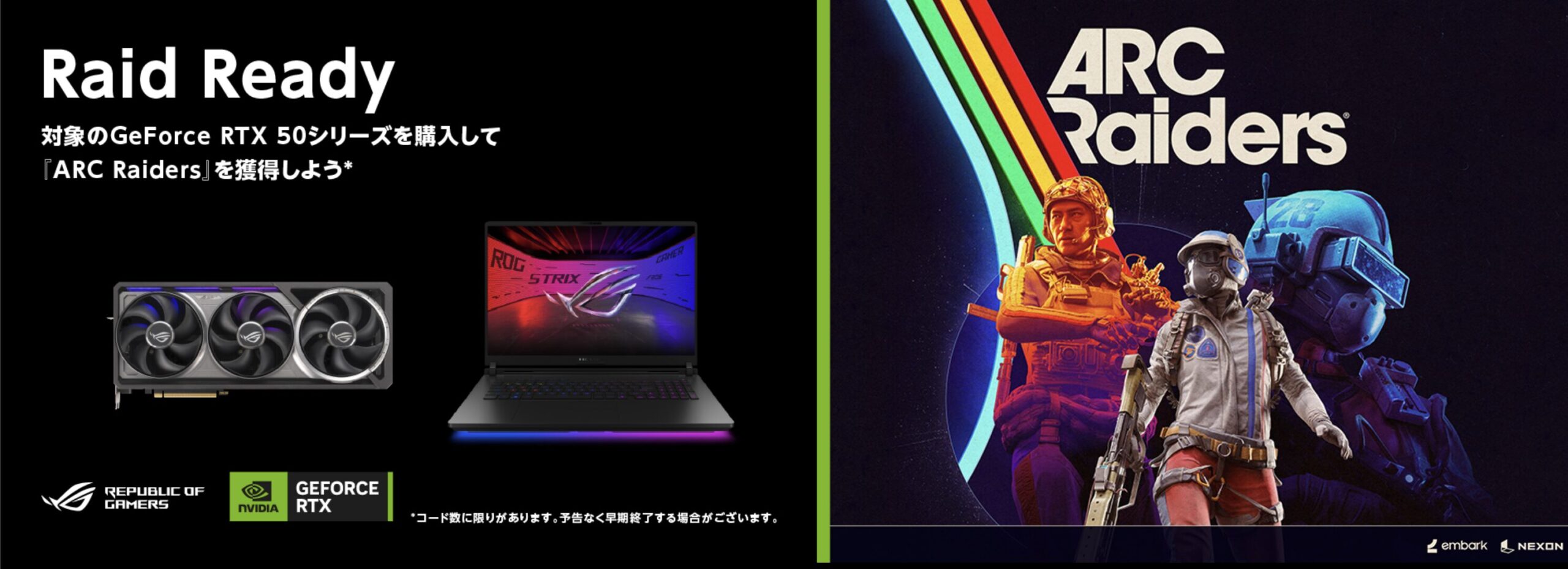 NVIDIA『ARC Raiders』バンドルキャンペーン【ASUS公式サイト】>>>