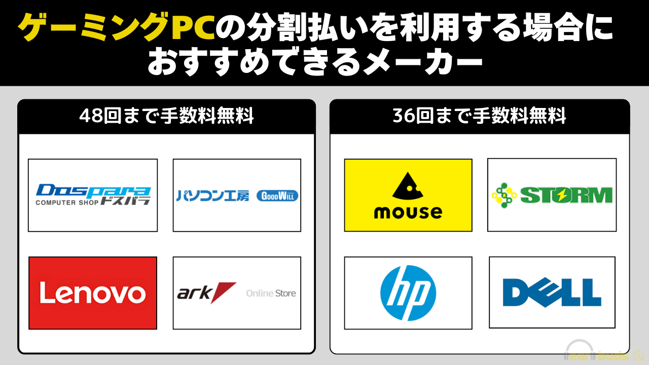 現在、分割払いが適用できるゲーミングPCメーカーは以下の通りです。