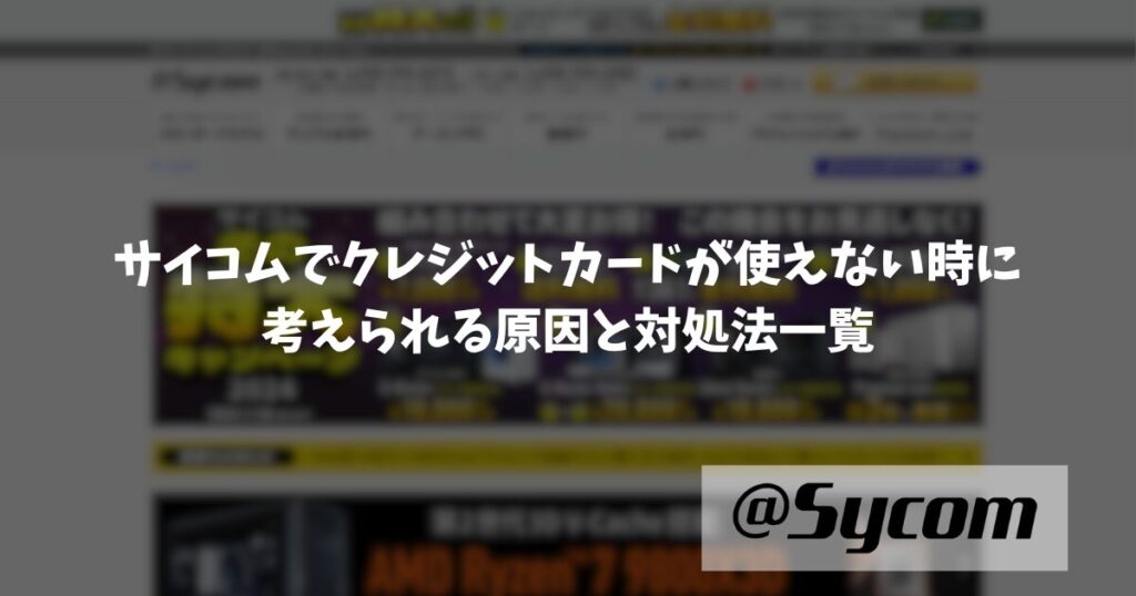 サイコムでPCを購入した際、稀にクレジットカードが使えずにエラーが出てしまうことがあるようです。 イヤバズスタッフが調査した結果、サイコムで決済エラーが出てしまう大きな原因は以下の3つでした。 今回の買い物でクレカ上限額に達している 3Dセキュ... -