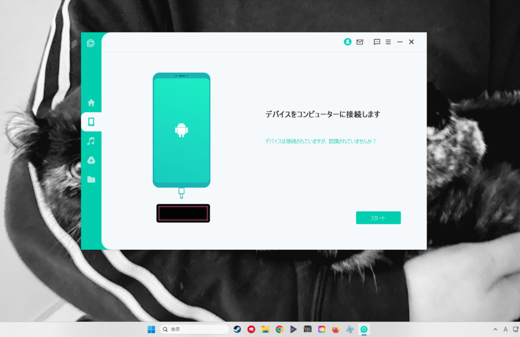 ダウンロードが完了したらソフトを起動させた状態で、復元させたいスマホとPC(今回はWindows機)を接続します。