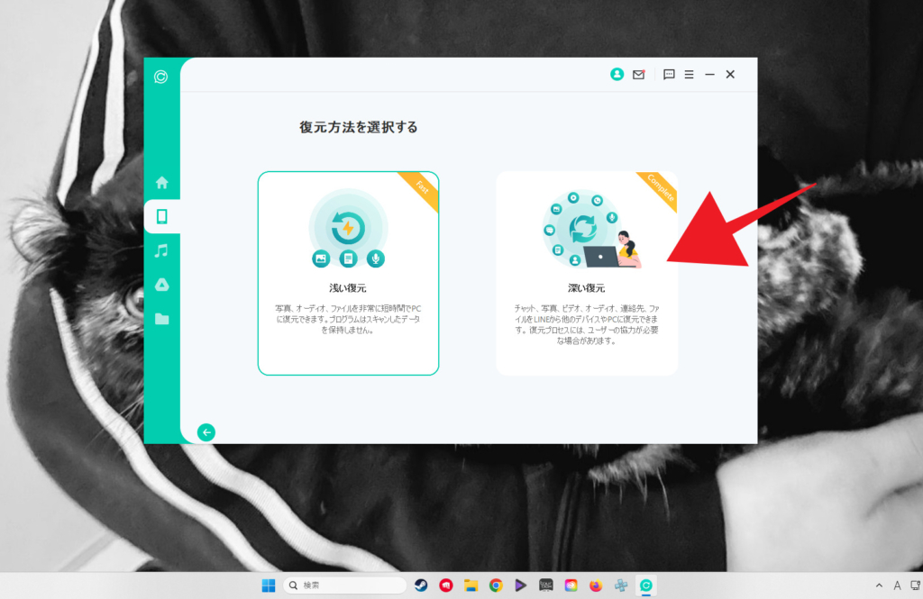 ここからは実際に「chatsback for line」の使い方を解説したいと思います。今回はWindows版を使用してデータの復旧を試してみます。