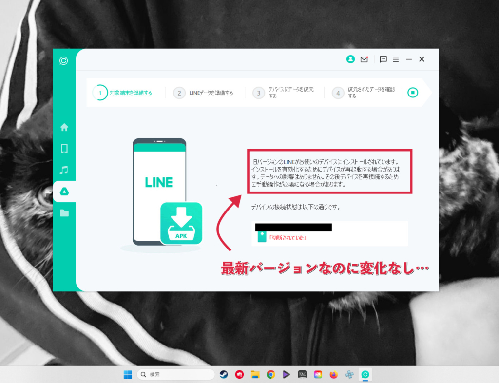 基本はソフト側がバックアップのために旧バージョンのLINEをインストールするようですが、この辺りの順番は状況によって左右する?