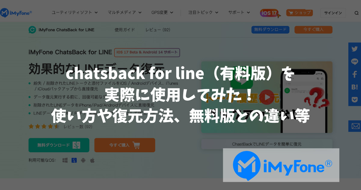 ChatsBack for LINE(有料版)を実際に使用してみた!使い方や復元方法、無料版との違い等
