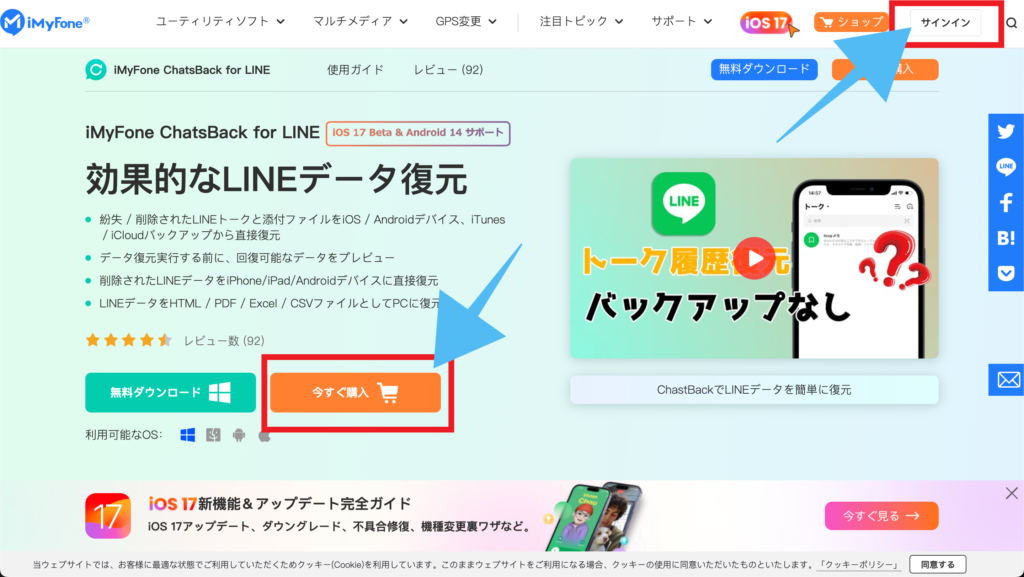まずはiMyFone IDを無料登録・作成したのち、「chatsback for line」をダウンロードします。