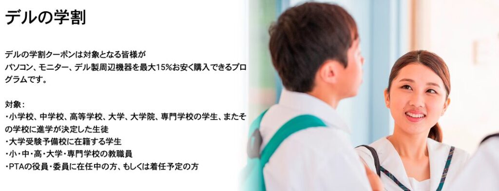 DELLの学割クーポンとは、学生や学校関係者などの学割対象者が、DELL製品を購入する際に使用できる割引クーポンです。