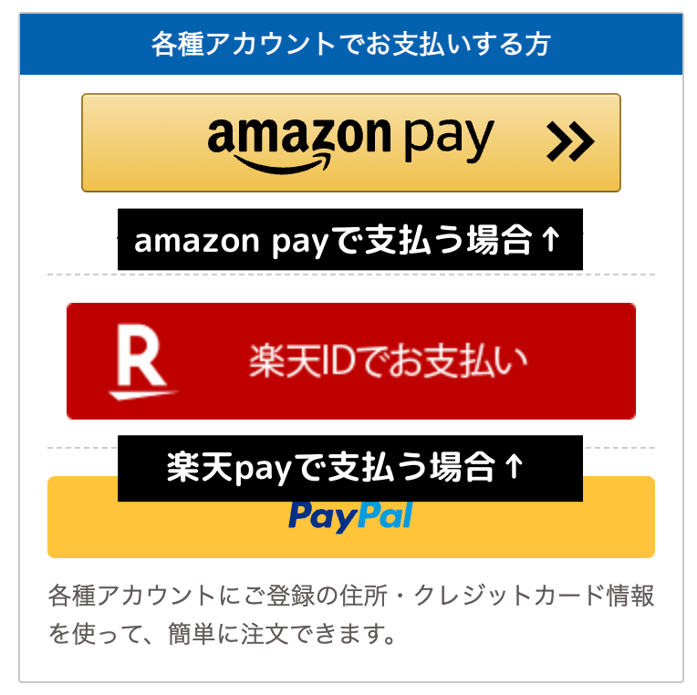「amazon pay、楽天payでの支払いをどうしても行いたい!」