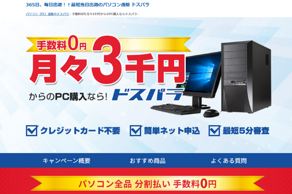 金利手数料無料キャンペーン中かどうか確認する【ドスパラ公式】>>>