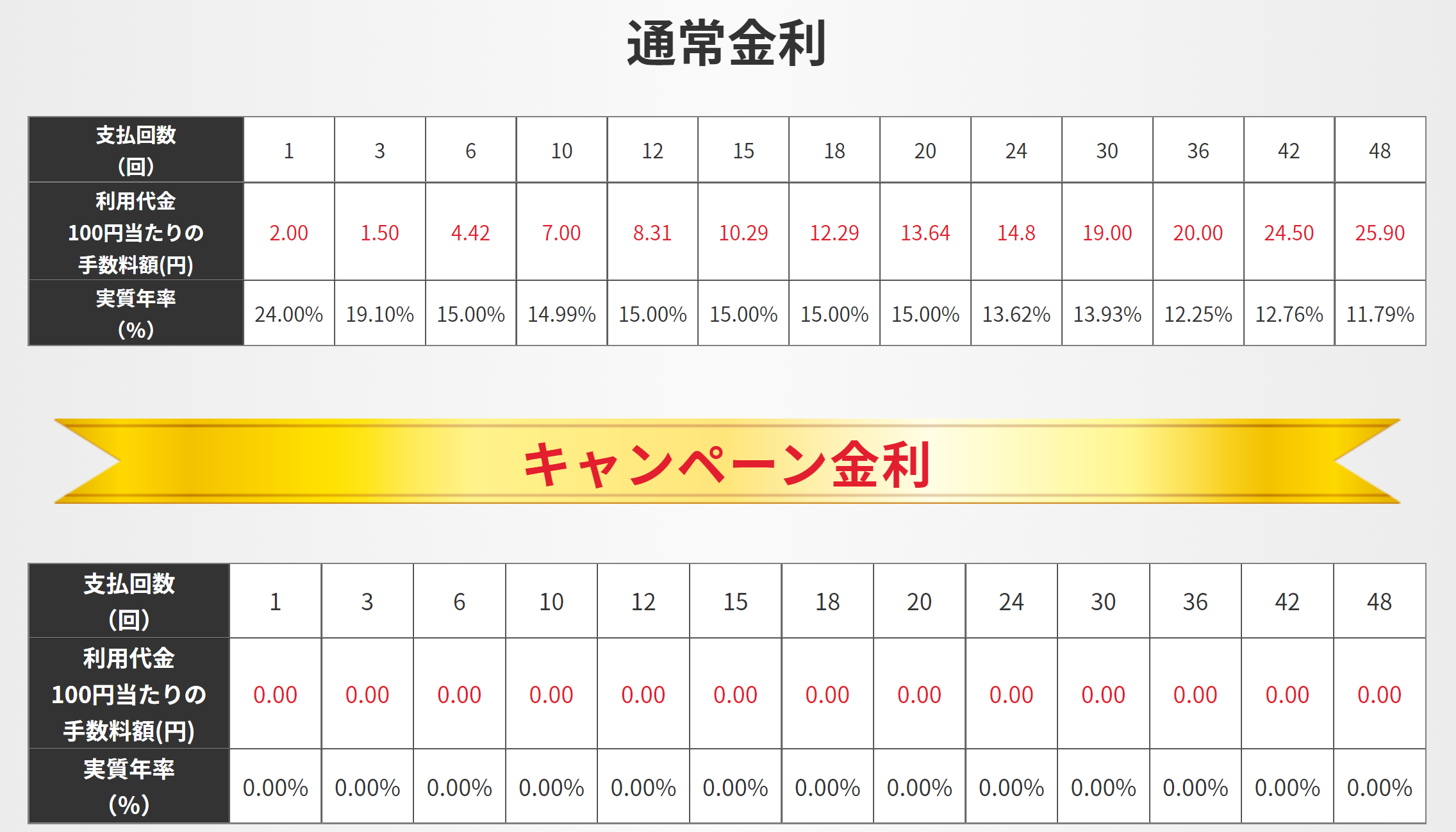 キャンペーン時の金利と、通常時の金利比較表は上記画像の通りです。
