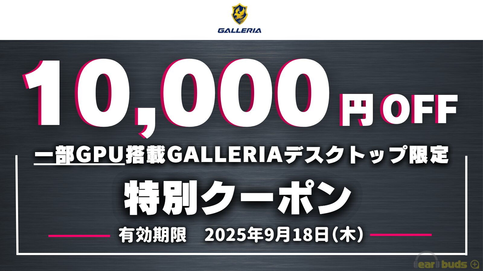 9月18日(木)10:59までの期間限定で、一部のGALLERIAに使える1万円OFFクーポンが発行中です!