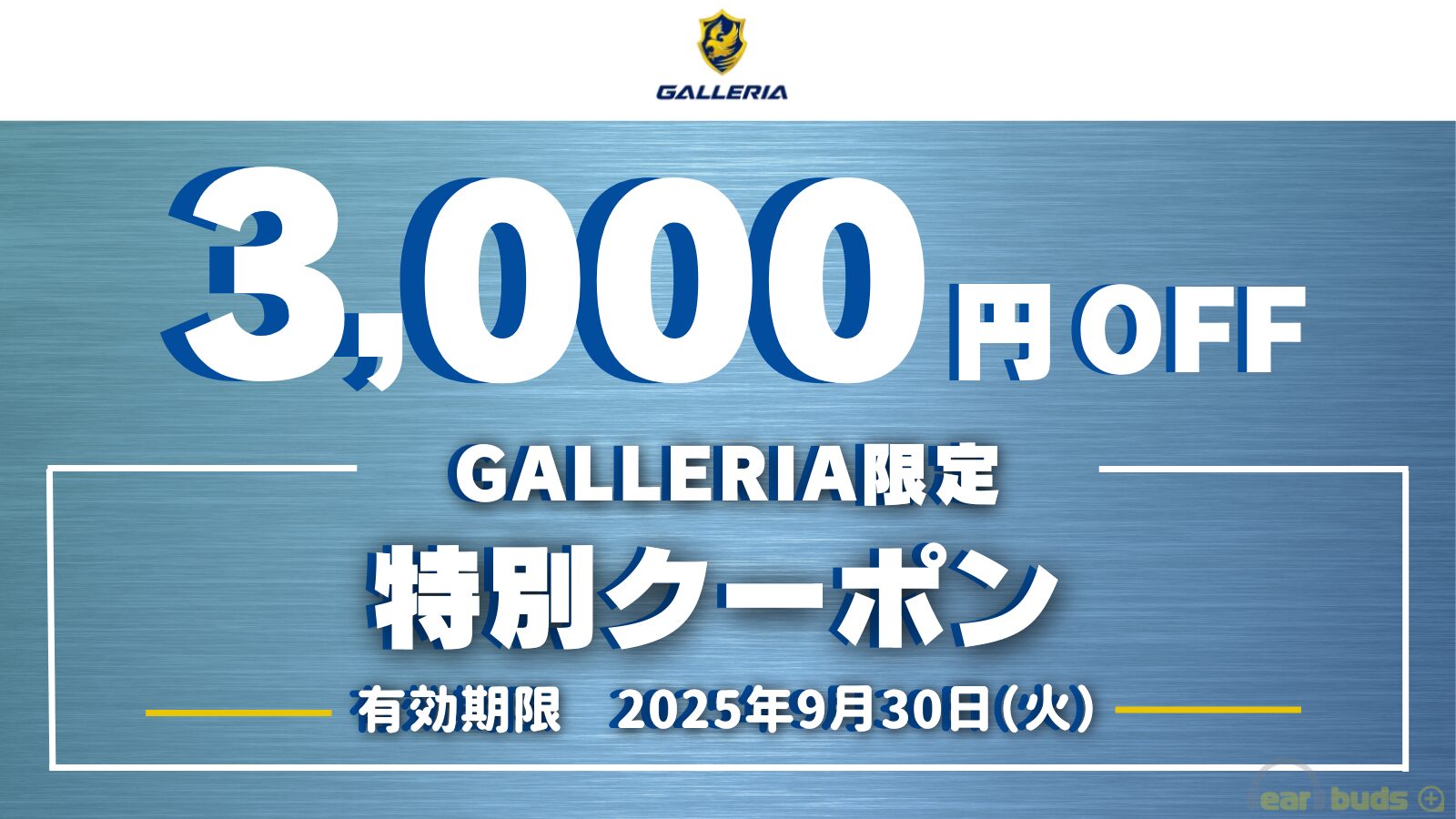 9月30日(火)23:59までの期間限定で、GALLERIA製品が3,000円OFFで買えるクーポンが発行中です!