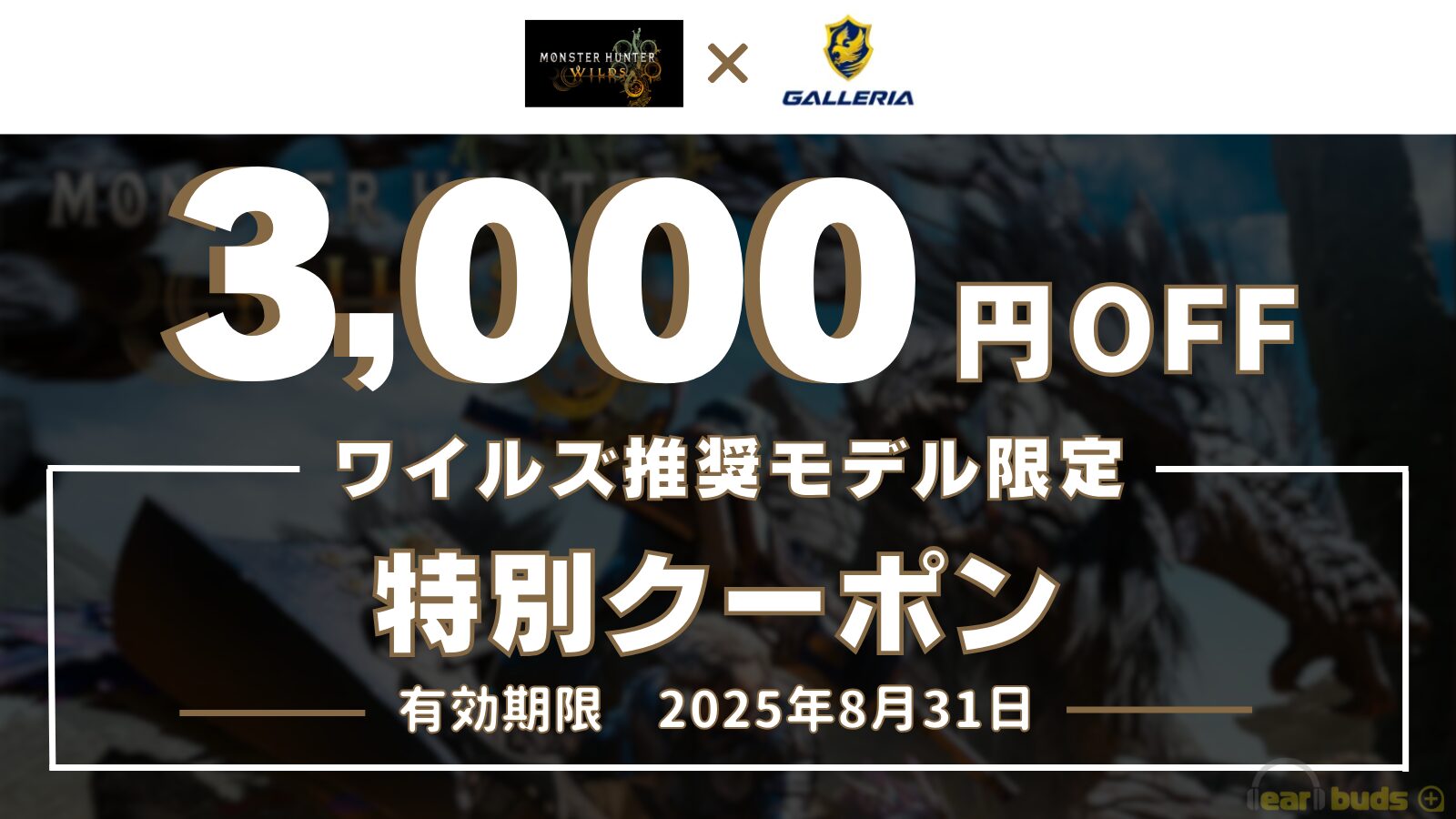 2025年8月31日までの期間限定で、「モンスターハンターワイルズ 動作確認済モデル」に使用可能な限定クーポンが発行されています。