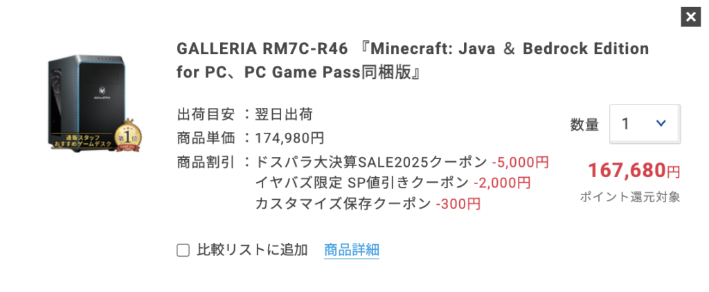 GALLERIA製品一覧でクーポンを適用する【ドスパラ公式】>>>
