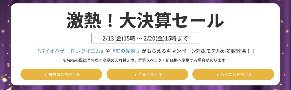 超絶コスパモデルをはじめとする、お買い得ゲーミングPCを購入するチャンスです。