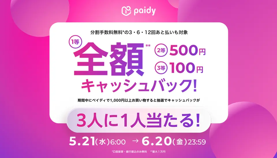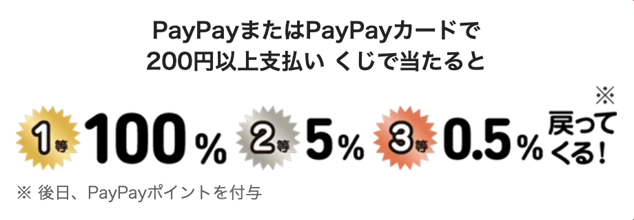 PayPayのメリットはなんと言っても高額ポイント還元ですが、今回のキャンペーンでは1等で100%のキャッシュバックが当たります。