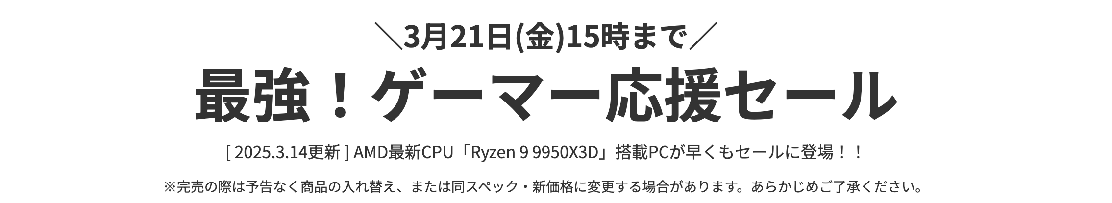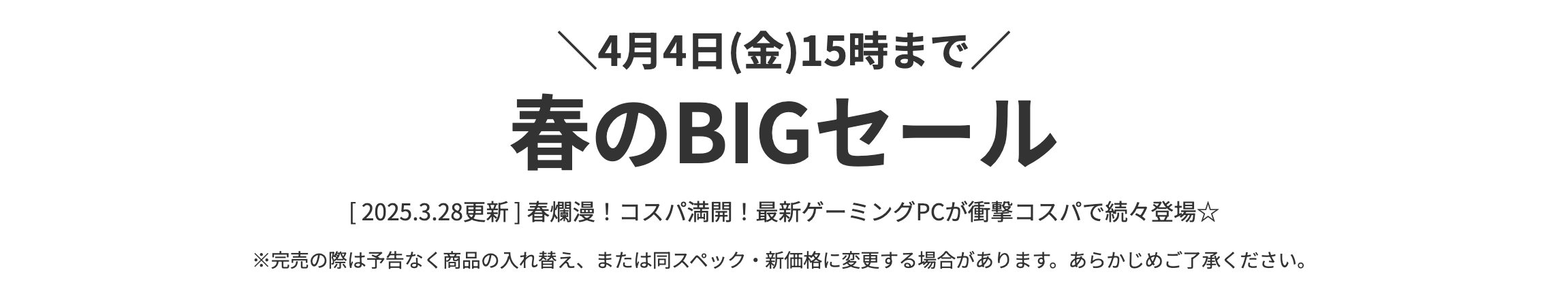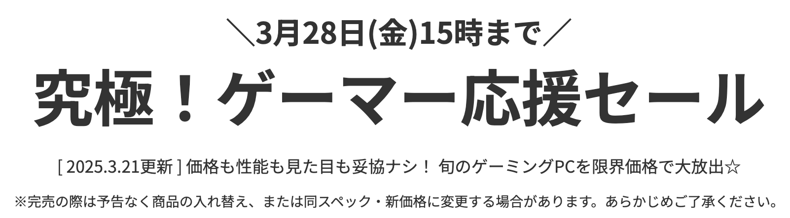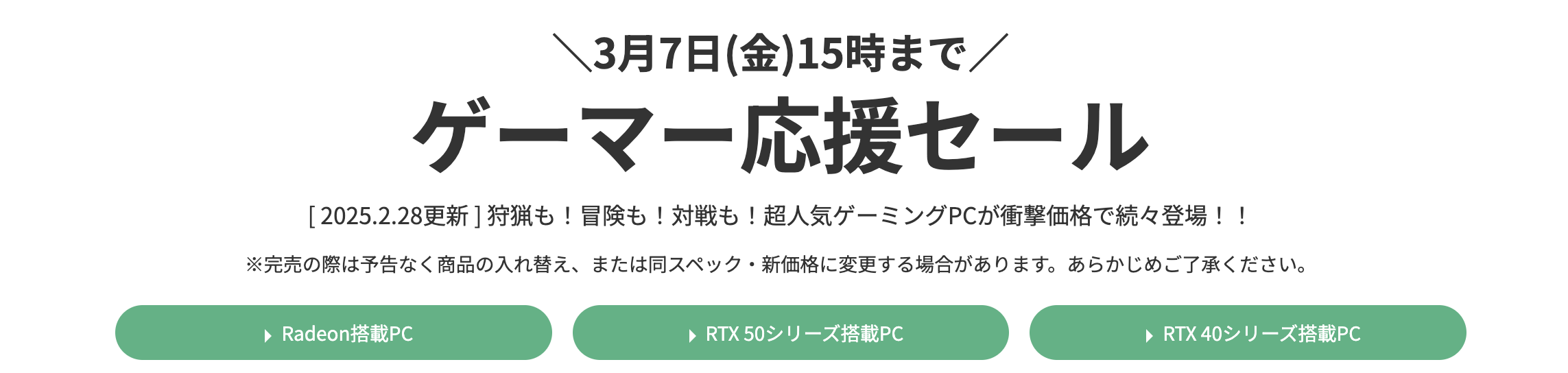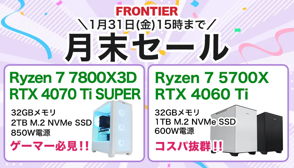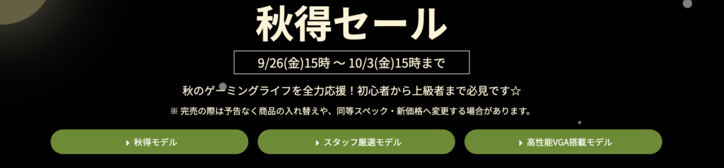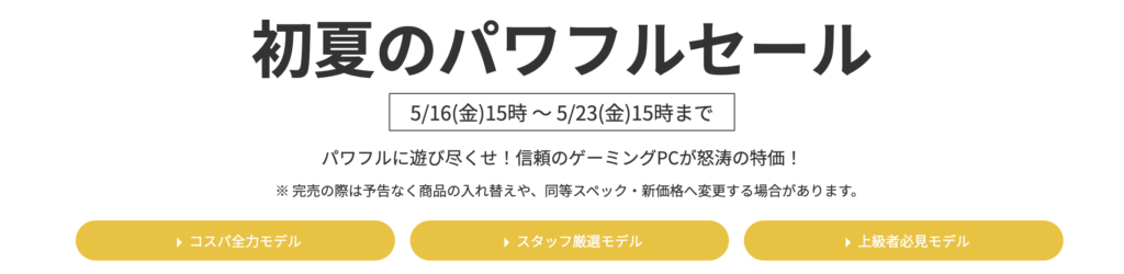 今回のセールは初心者から上級者も満足のお買い得ゲーミングPCが盛りだくさんとなっております。
