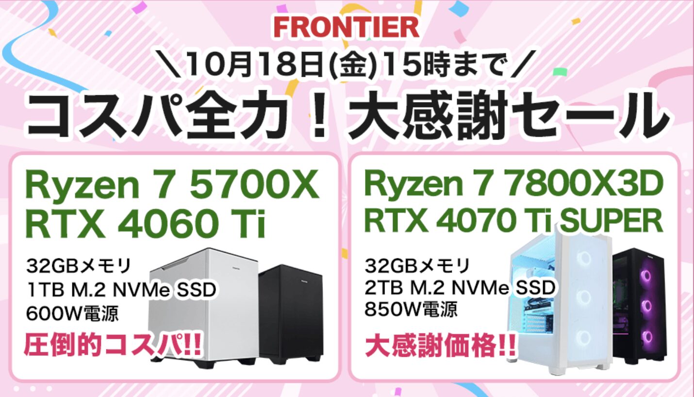 どうでしたか?…フロンティアはお得なゲーミングPCが多すぎて怖くなりますよね?