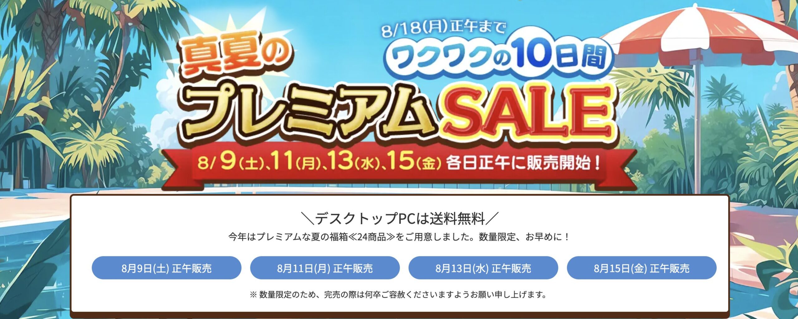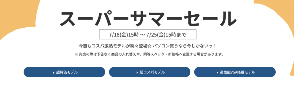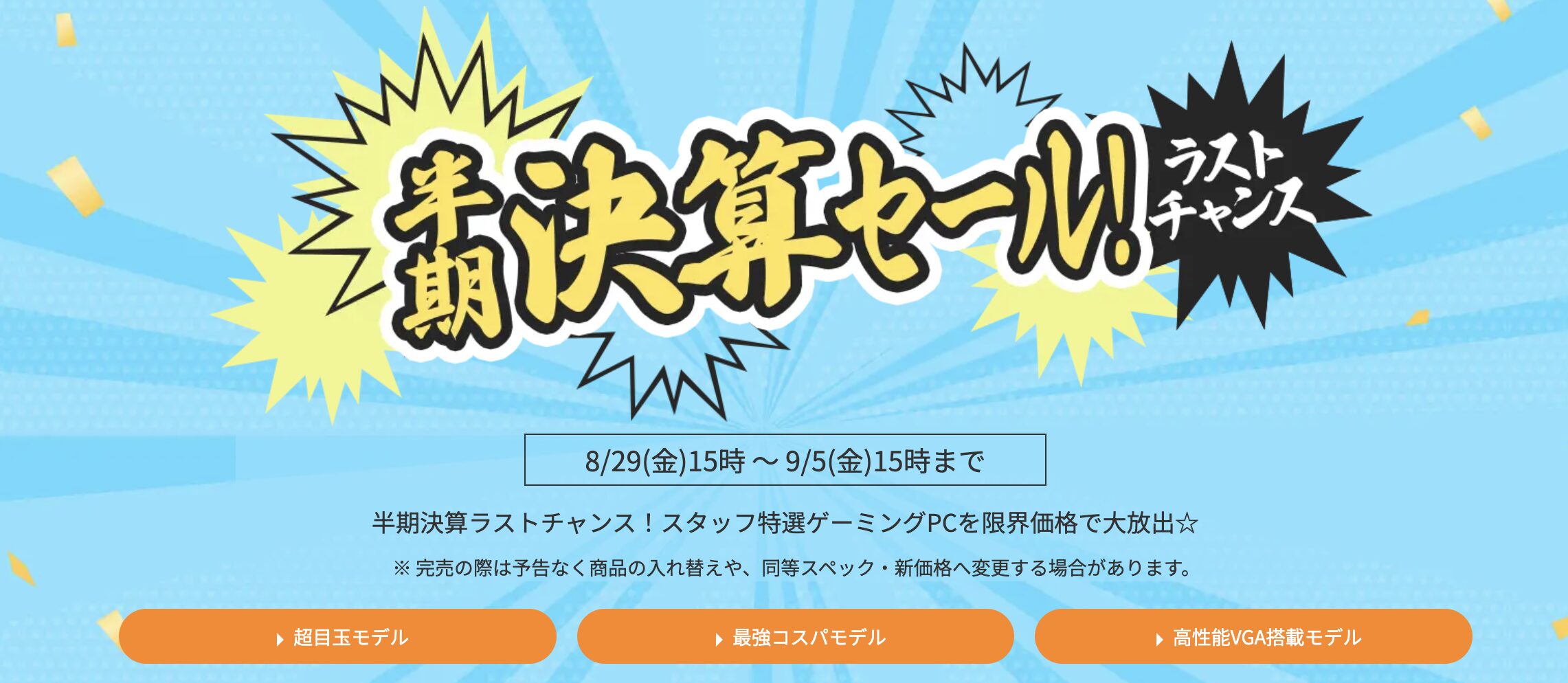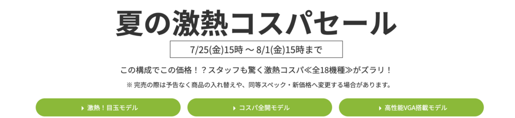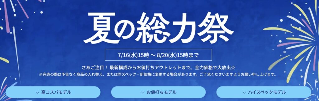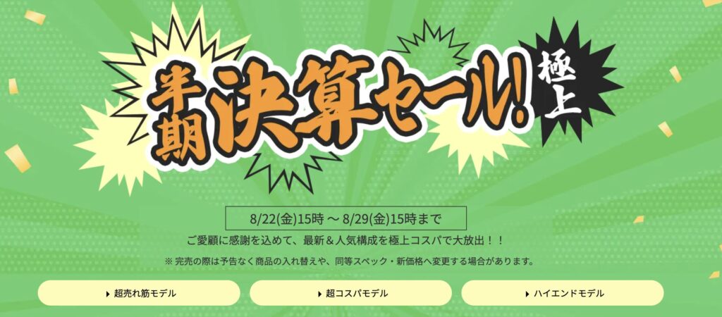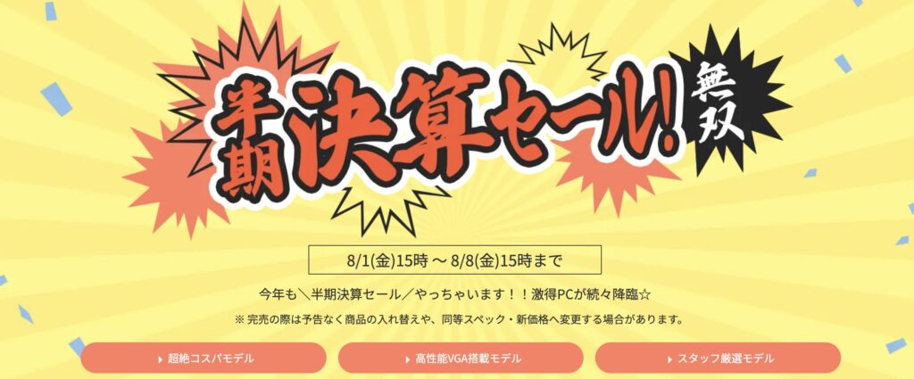ただしセールPCは完売した場合、2度と再入荷しませんので、無くなる前に今すぐセール会場へ向かいましょう!