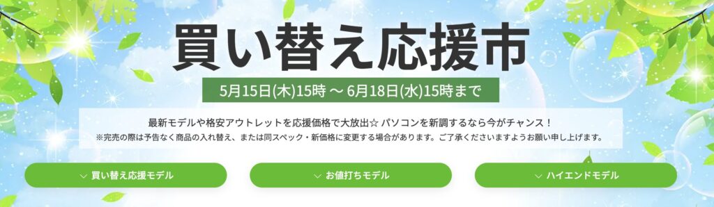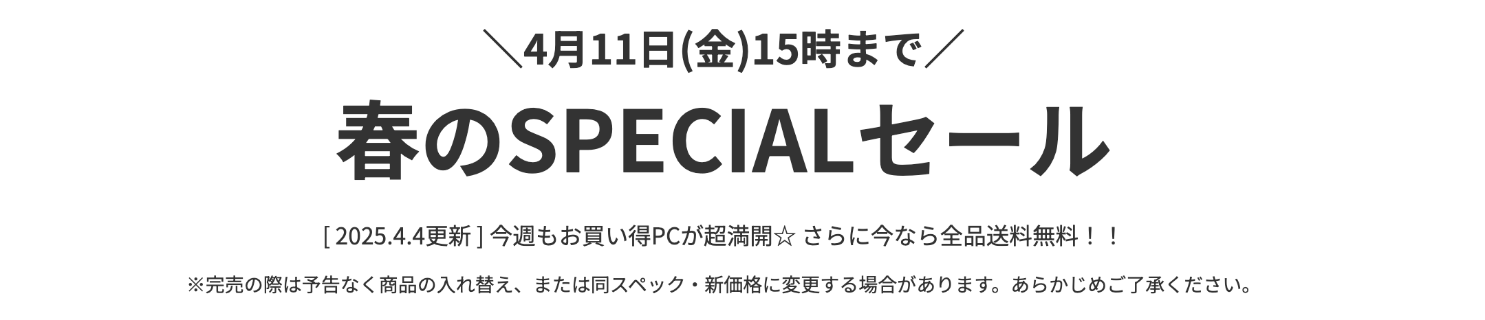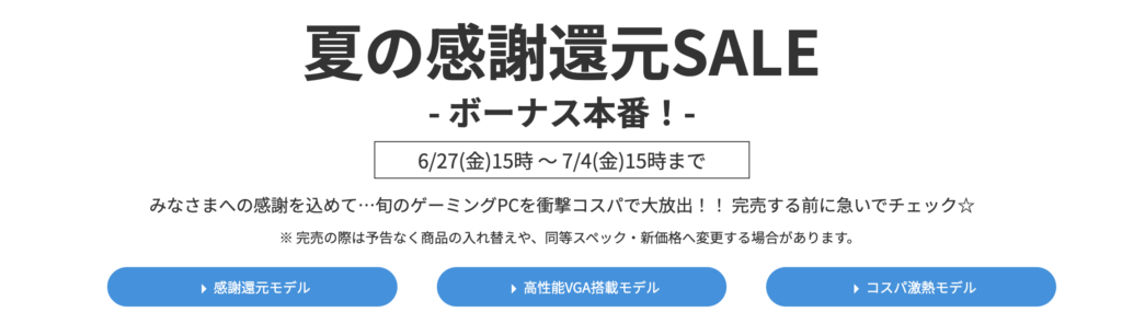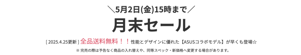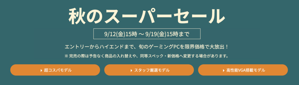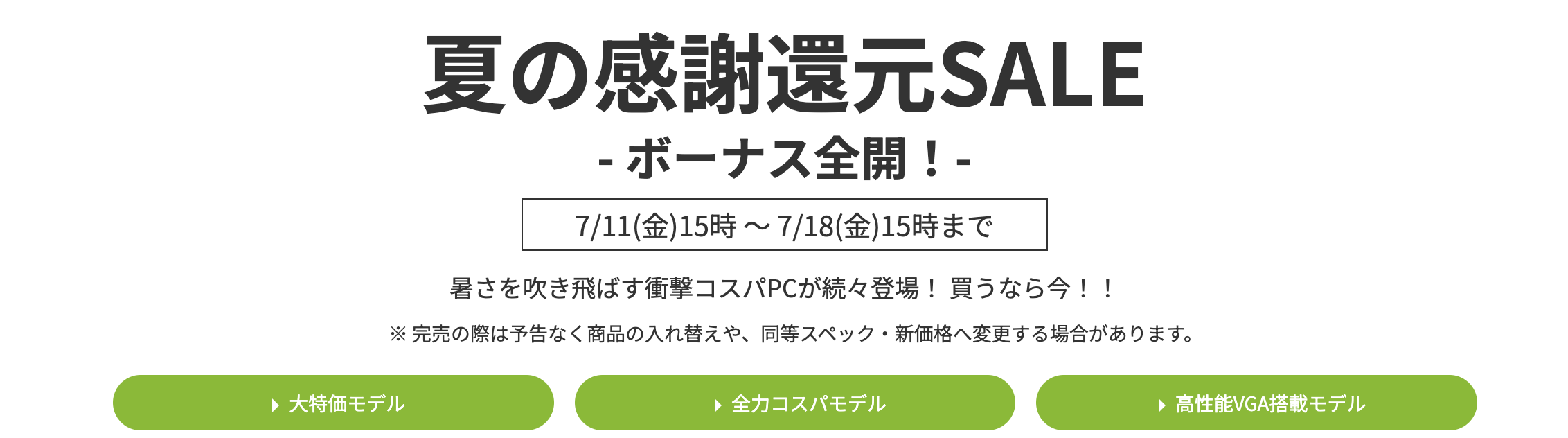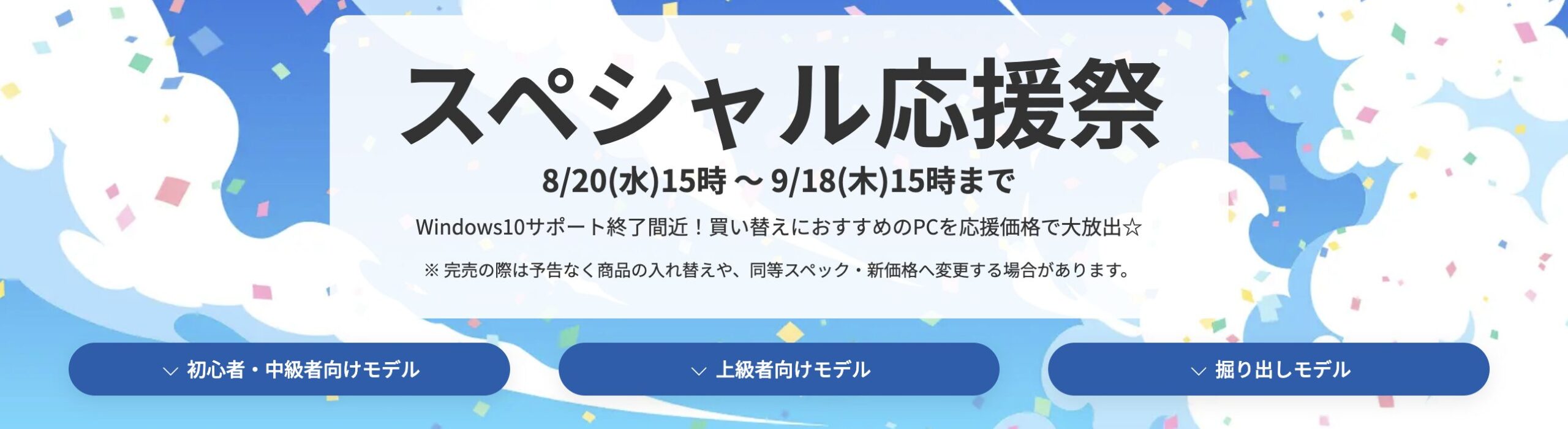 ただしセールPCは完売した場合、2度と再入荷しませんので、無くなる前に今すぐセール会場へ向かいましょう!