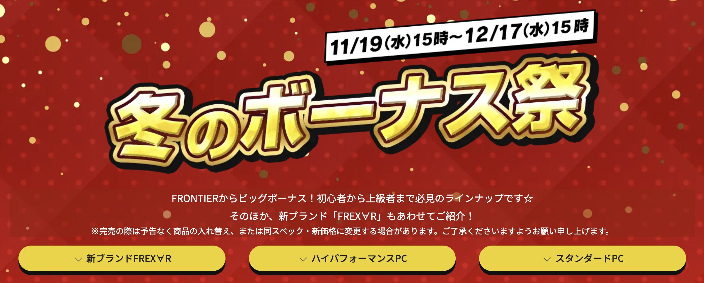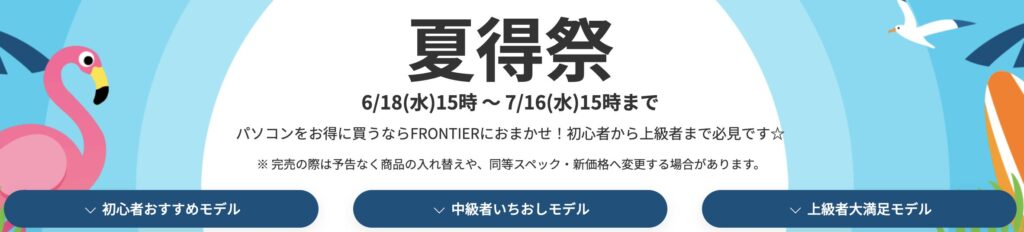 普段から安いフロンティアだけど、セールになってるパソコンはさらに安くて評判なんだよ!