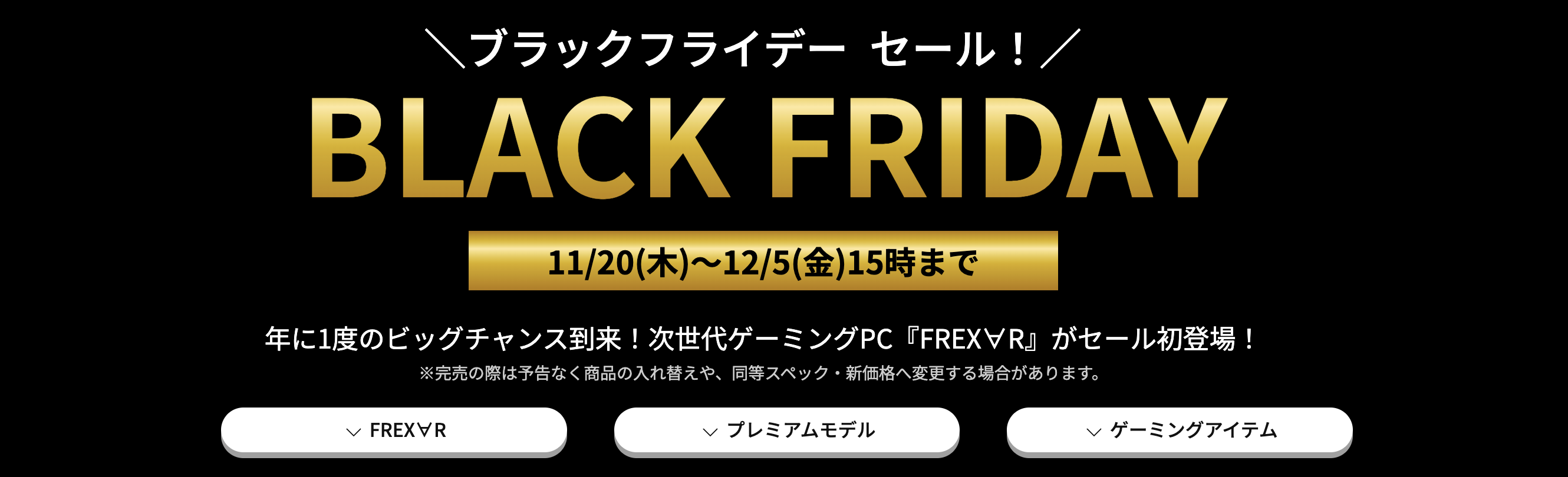 - FREX∀R(フレクサー)をはじめとする人気ゲーミングモデルPCがお買い得!