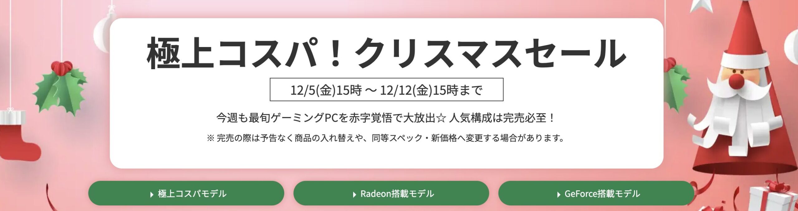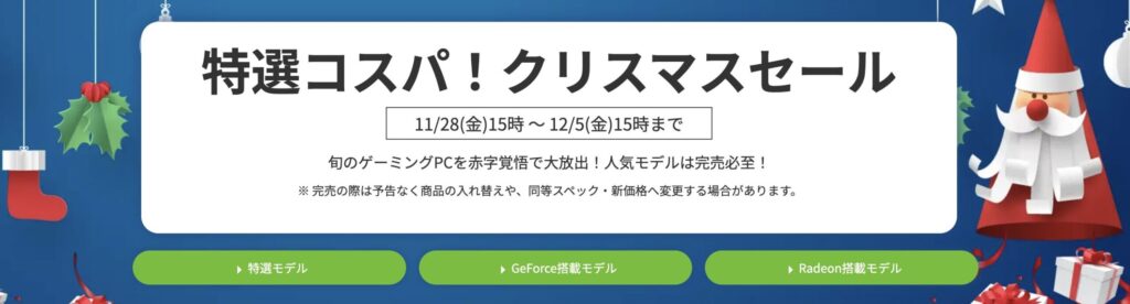 ゲーミングPCが高騰している今、このセールを活用してお得にゲットするのが賢い選択肢だと考えられます。