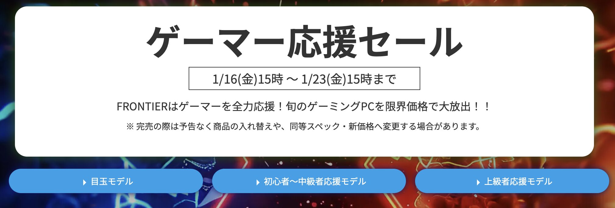 ゲーマー応援セールをチェック!【フロンティア公式】>>>