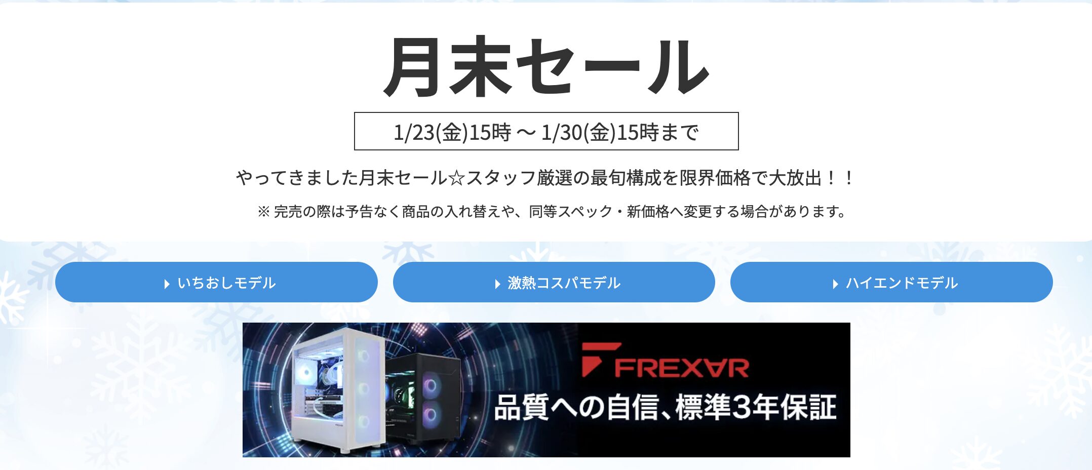 • FREX∀R(フレクサー)やお買い得ゲーミングPCをお見逃しなく!
