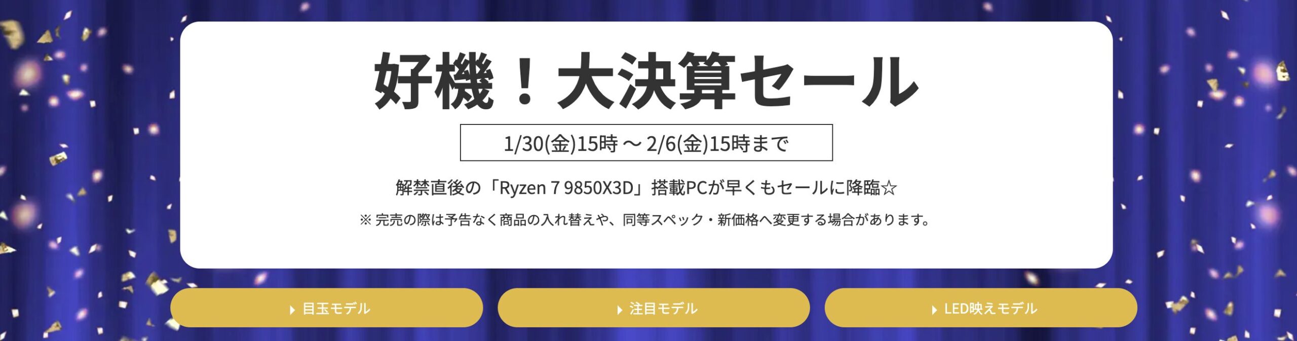 超絶コスパモデルをはじめとする、お買い得ゲーミングPCを購入するチャンスです。