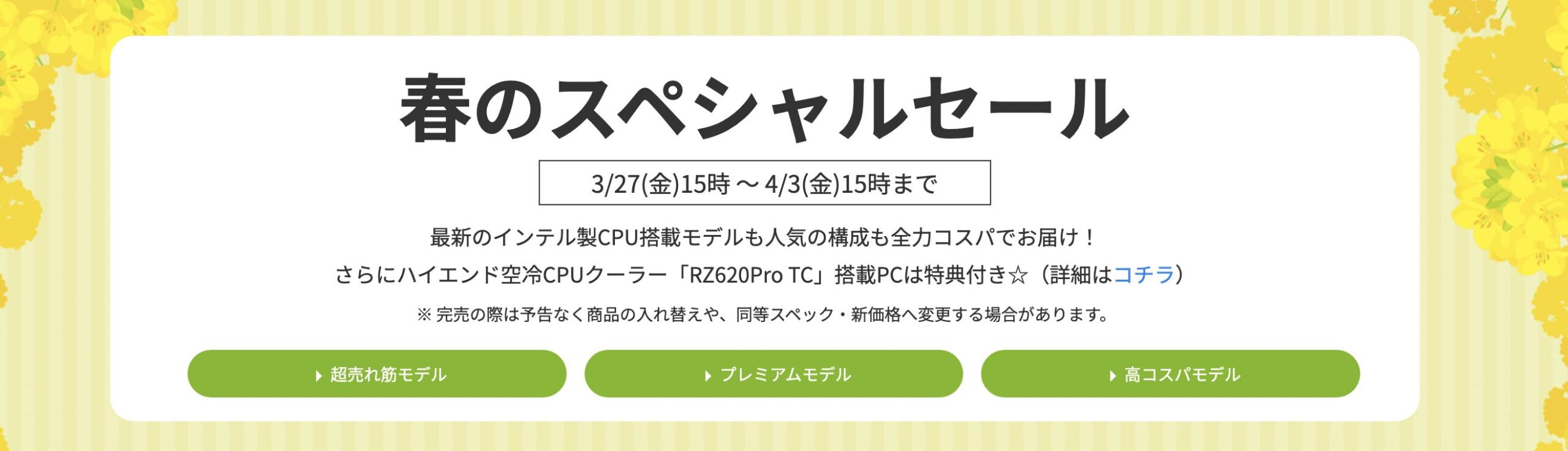 春のスペシャルセールでは「超売れ筋モデル」「プレミアムモデル」「高コスパモデル」の3ジャンル、合計18モデルが限定特価で販売中です。