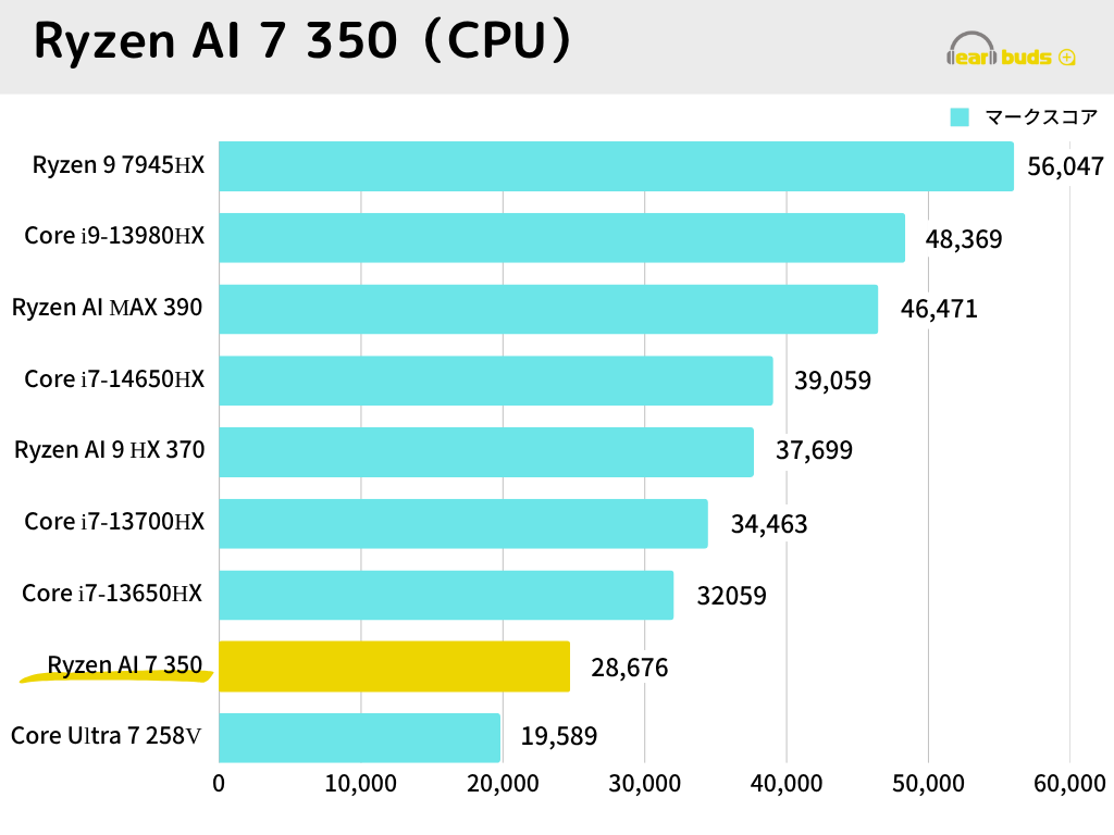 AMD Ryzen AI 7 350は、その名の通りAI性能に優れたCPUです。