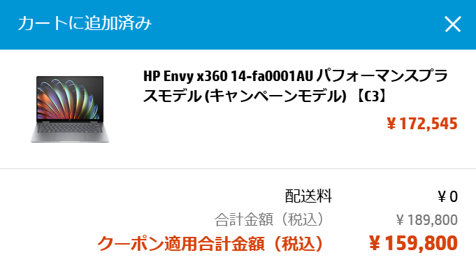 HPのPCは、クーポン適用して購入することをおすすめします。