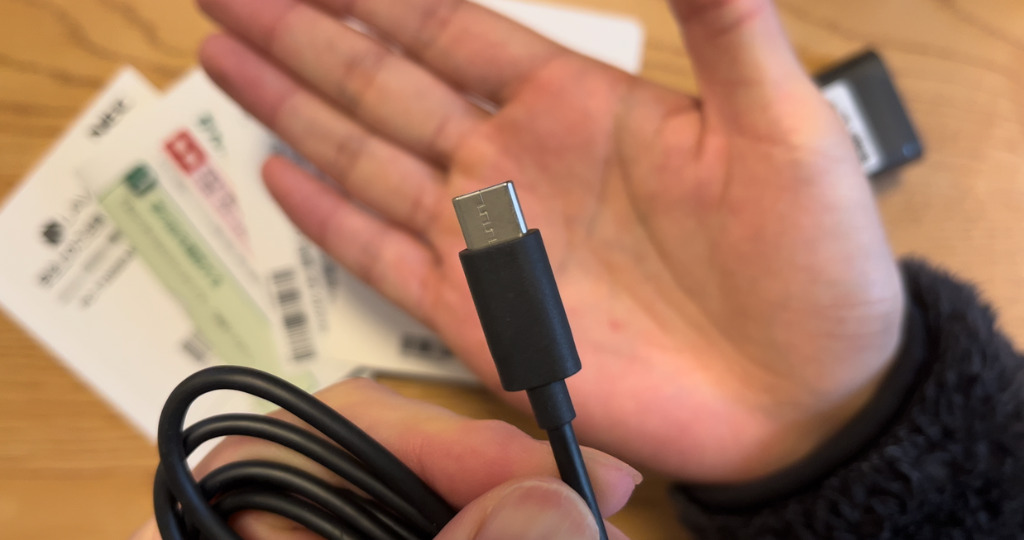 ケーブルはType-Cとなっており、一般的な充電に加え、他端末へのデータ送信などにも利用可能です。