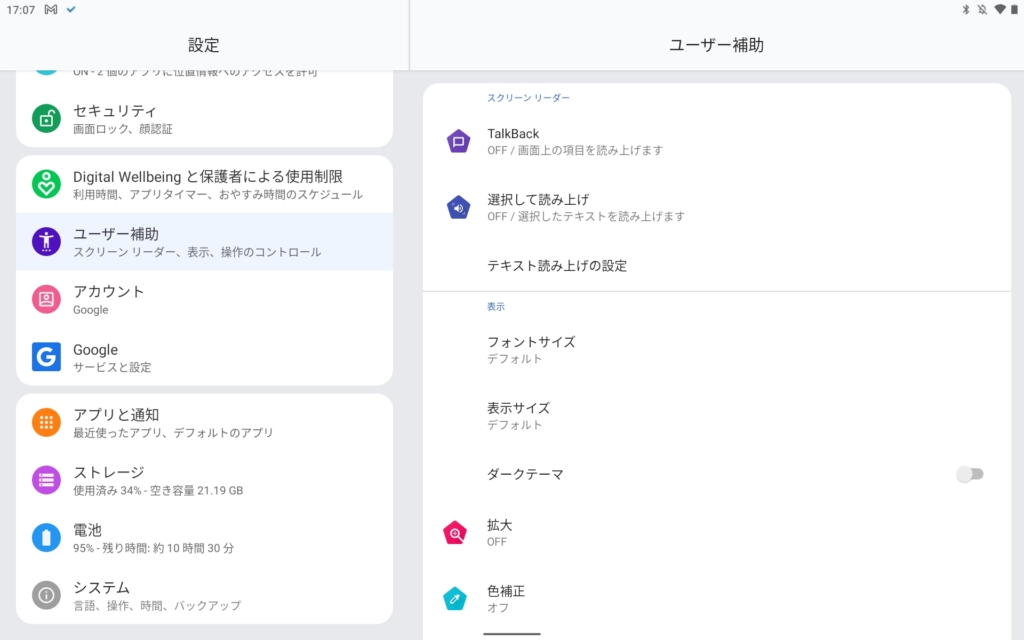 文章を読み上げてくれる「Talk book」機能に加えて、「色補正」や「色反転」など、こちらは痒い所に手が届く仕様となっております。
