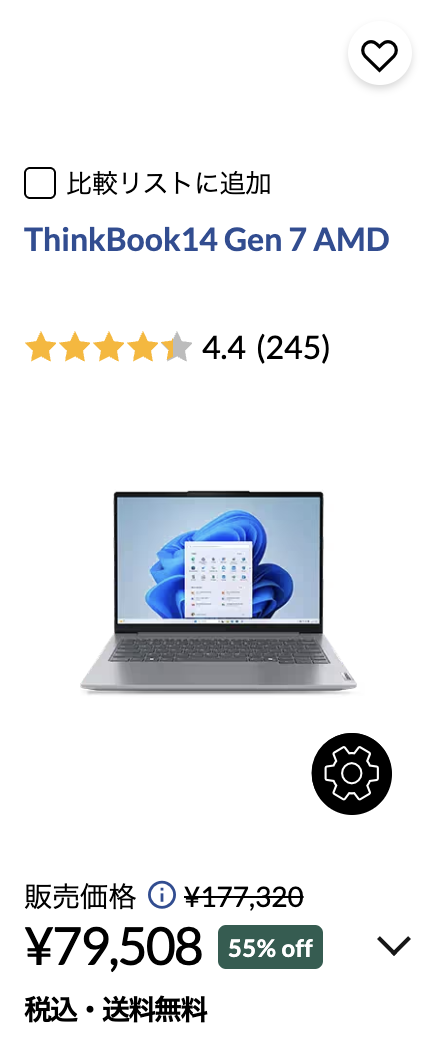 レビュー数300件越え、評価4.4の大人気PC「ThinkBook 16 Gen 7 AMD プレミアム」がクーポン適用で57%OFFです。