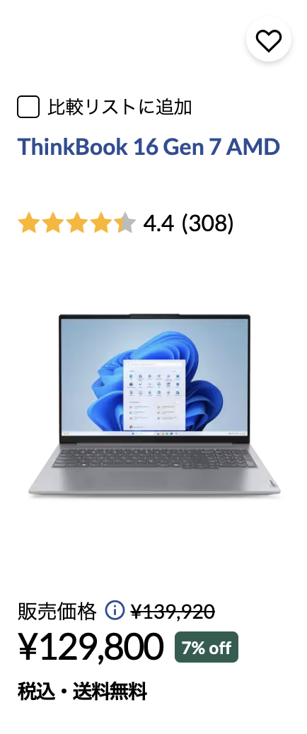 - ThinkBook 16 Gen 7 AMD プレミアム|57%OFF