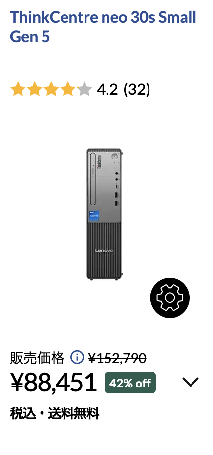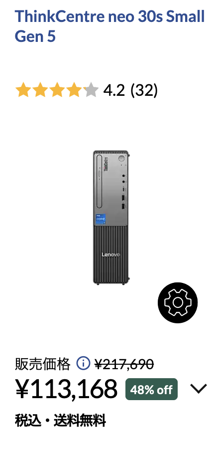 「ThinkCentre neo 30s Small Gen 5」→113,168円 [48%OFF]円217,690