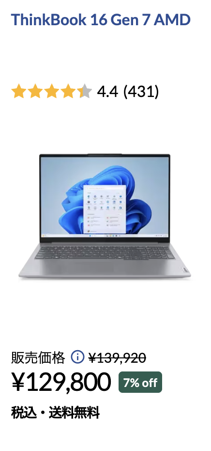 「ThinkBook 14 Gen 8 Arrow Lake(優先生産モデル)」→91,168円 [55%OFF]円207,020