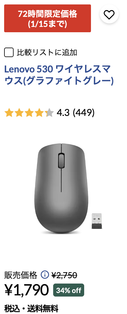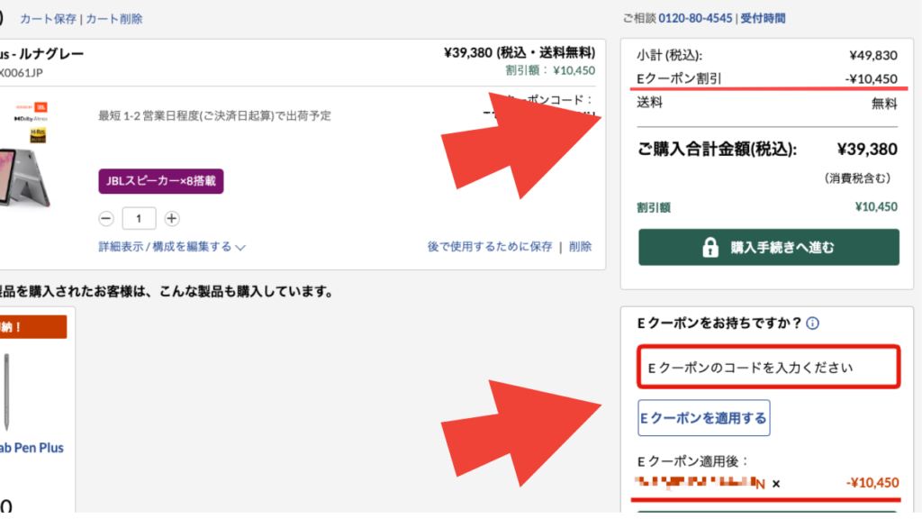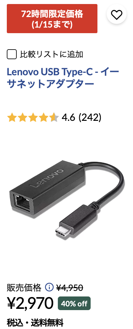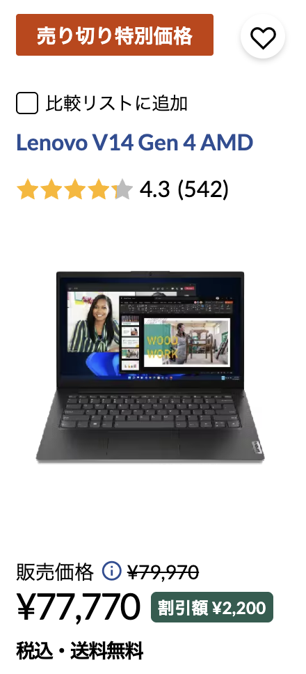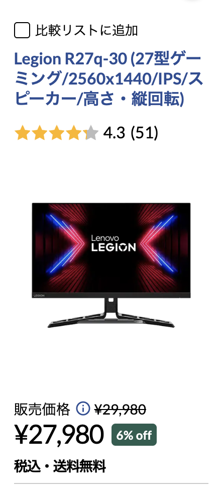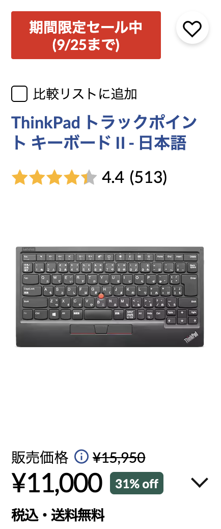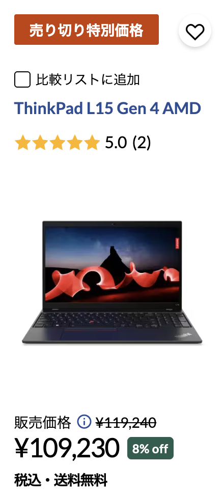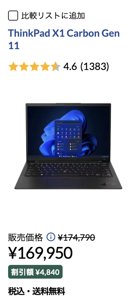 割引率は数%と小さい場合もあれば、50%以上と大きな割引率になることもあるので、Lenovoで買い物をするときには欠かせません。